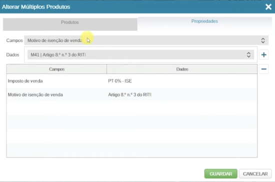 Faça Guardar. Os produtos selecionados ficaram agora com alterações definidas.