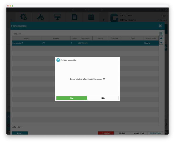 O Gestwin irá perguntar se deseja eliminar o fornecedor selecionado. Clique em Sim.
