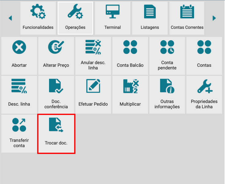 No ecrã principal vá Funções -> Operações -> Trocar doc.