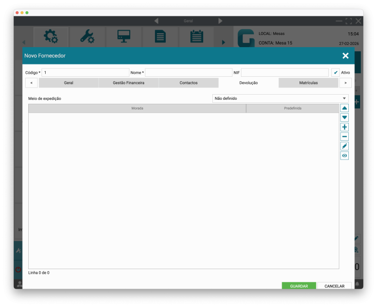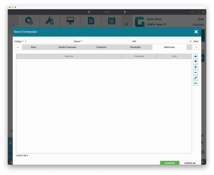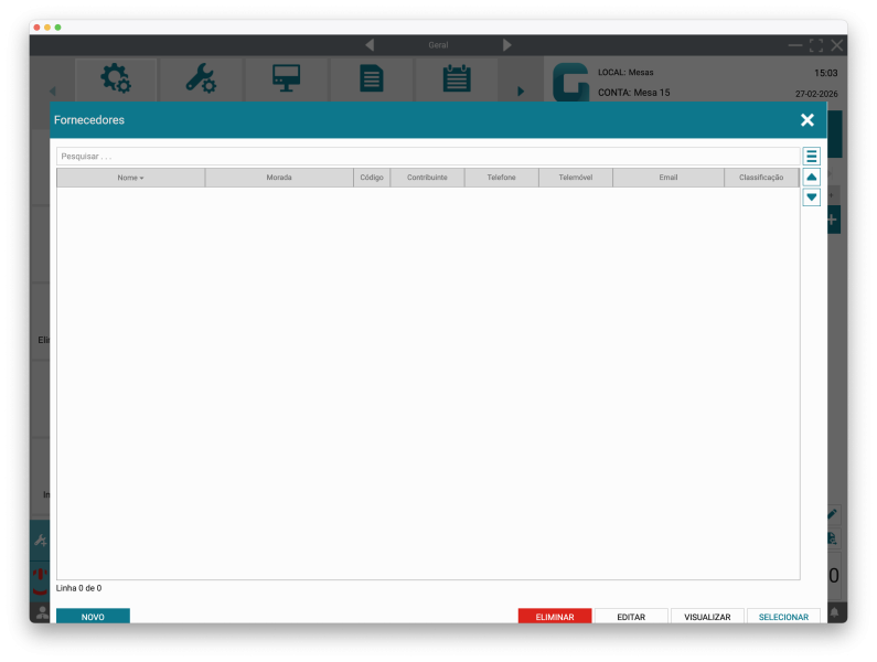 No ecrã principal vá Funções → Funcionalidades → Fornecedores
