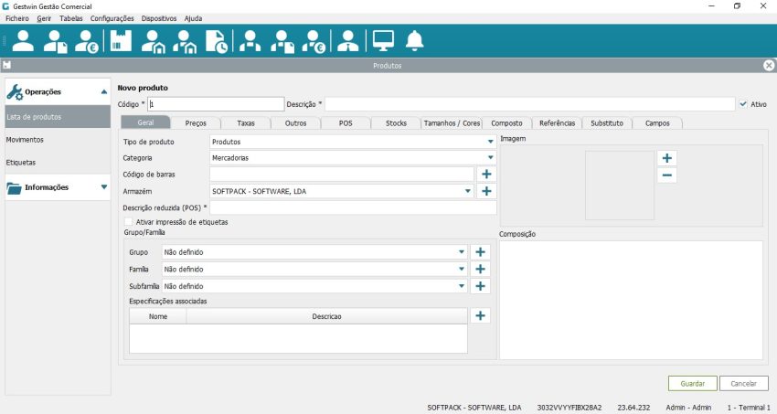 Dê um nome ao seu produto e associe uma família (caso necessário). No separador Preços, defina um preço para o seu produto composto. Siga os passos para a criação de um produto aqui.