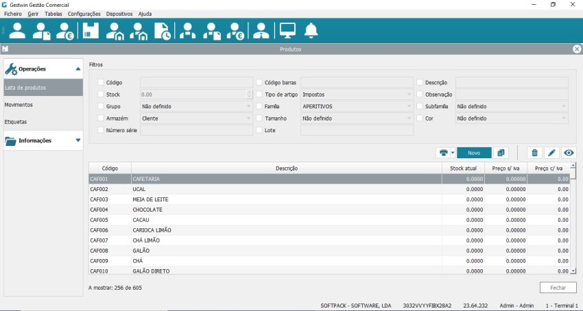 Gestão de stocks (o que vai ser movimentado no stock, certifique-se que o controlo de Stock está ativo)