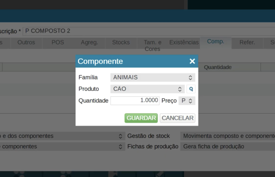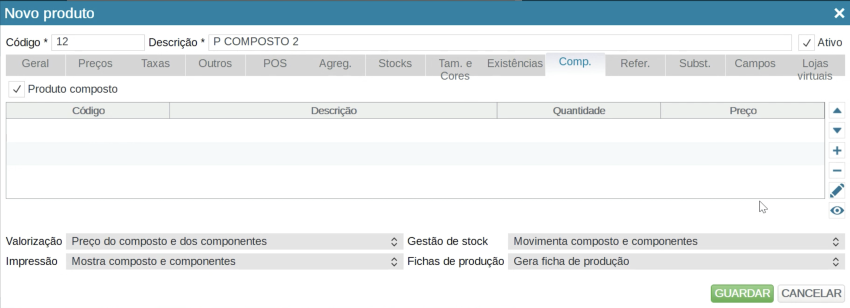 - Movimenta composto e componentes – Movimentará o Stock do composto e dos componentes.