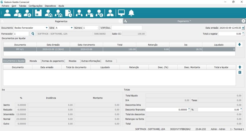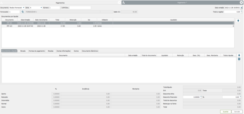 Como registar pagamentos efectuados a fornecedores, liquidando faturas, notas de débito ou outros documentos pendentes, e emitir o recibo correspondente.