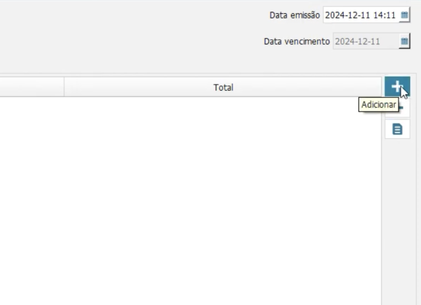 Adicione produtos ao seu documento de venda clicando no icon + (Adicionar)