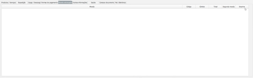 - Total: Exibe o valor total do documento já convertido para a moeda estrangeira selecionada.