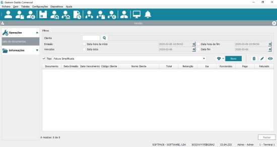 Se a funcionalidade Faturação eletrónica estiver ativa quando fizermos Guardar é neste separador que podemos ver o estado do documento: