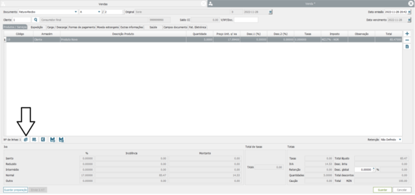 - Após selecionar as linhas desejadas, clique no botão Guardar.