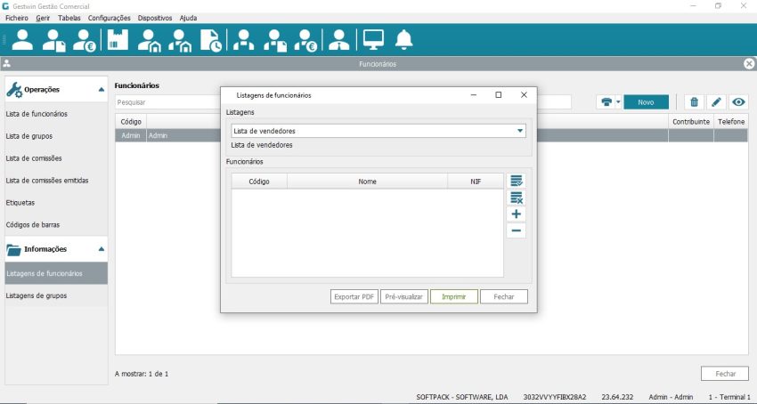 No meu principal vá a Gerir -> Funcionários ou aceda ao icon Funcionários da barra de atalhos