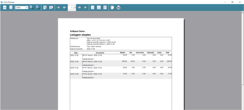 - Funcionalidade: Mostra a listagem no ecrã antes de imprimir.