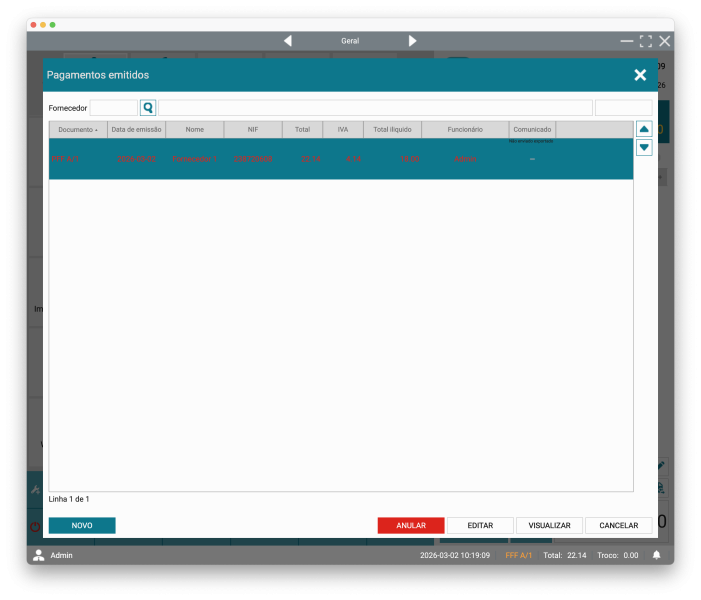 Será apresentada a lista de documentos de pagamento.