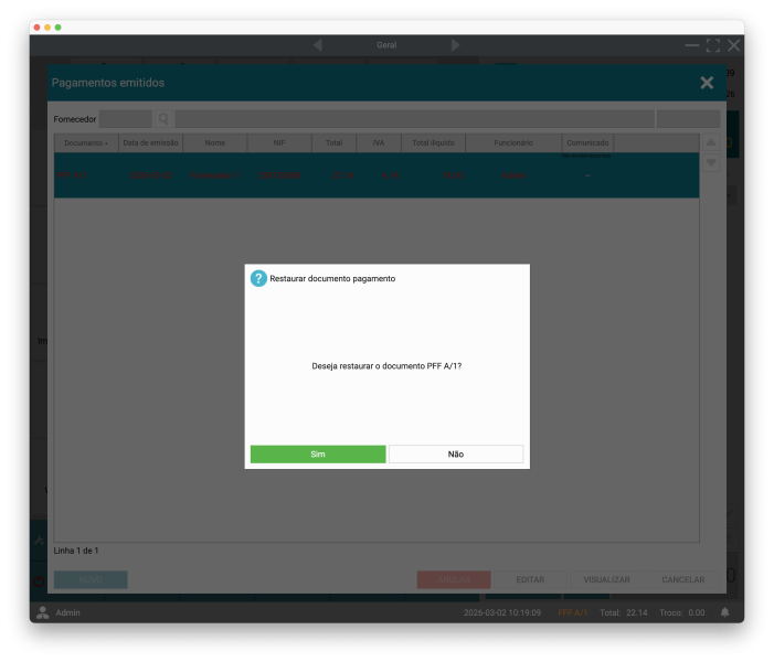 “Deseja restaurar o documento PFF A/1?”