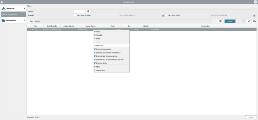 - Clique com o botão direito do rato sobre o documento anulado que deseja recuperar.