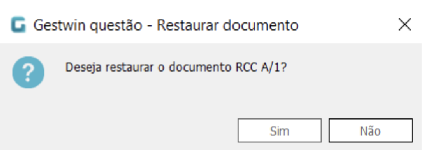 - O sistema abrirá uma janela de confirmação com a pergunta: “Deseja restaurar o documento [Número do Documento]?”.