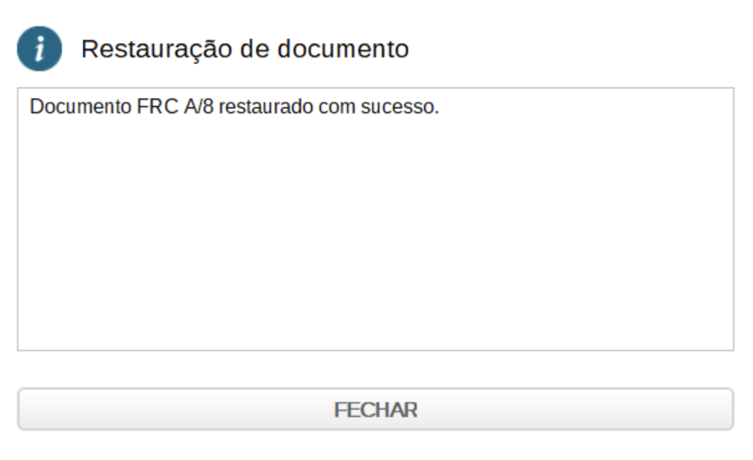 “Documento FRC A/8 restaurado com sucesso.”