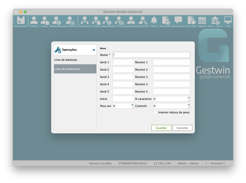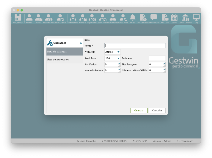 De volta ao separador Lista de balanças, clique em Novo e preencha os campos com o novo protocolo. Clique em Guardar.