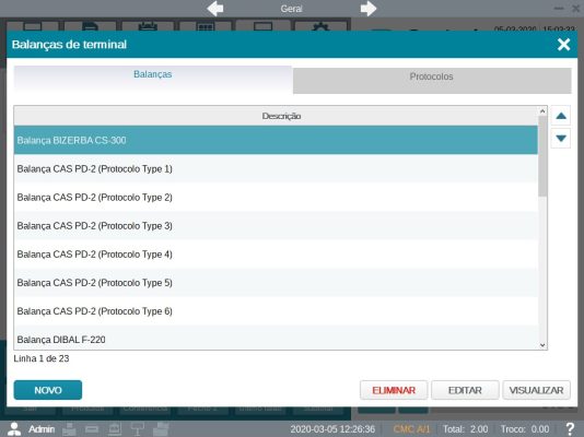 Se a balança que pretende usar no Gestwin não está na lista poderá criar a balança mas antes de que criar o protocolo da balança caso o Gestwin não tenha. Para ver os protocolos navegue até ao separador Protocolos. Para criar um novo protocolo clique em Novo.