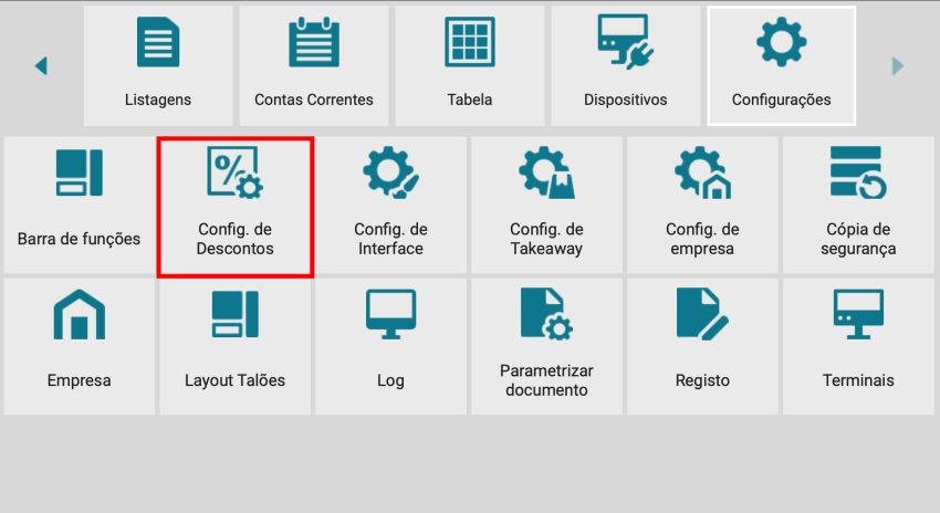1. Localizar o ecrã Configuração de Descontos