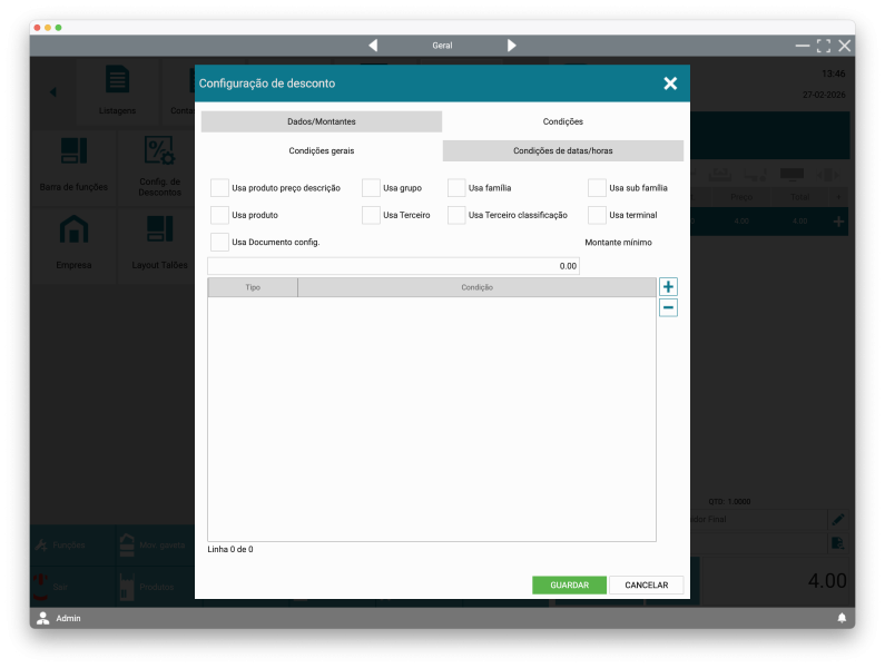 Esta funcionalidade é essencial para gerir campanhas promocionais, descontos para clientes específicos, ofertas do tipo “leve 3 pague 2” ou regras automáticas aplicadas no momento da venda, garantindo rapidez no atendimento e controlo comercial.
