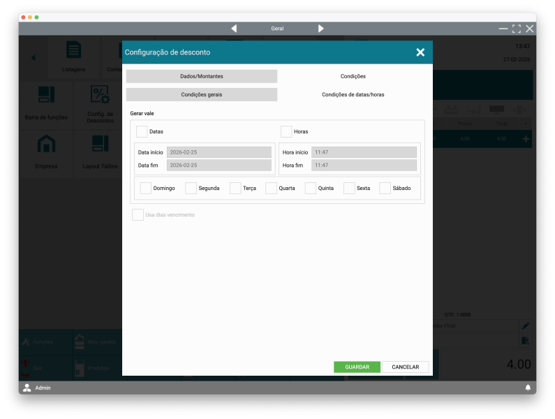 Desconto por vale: Permite gerar ou utilizar vales de desconto.