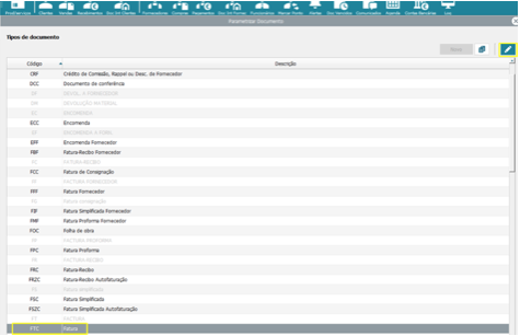 - 2. Selecione o tipo de documento para o qual deseja ativar as referências multibanco e faça Editar.