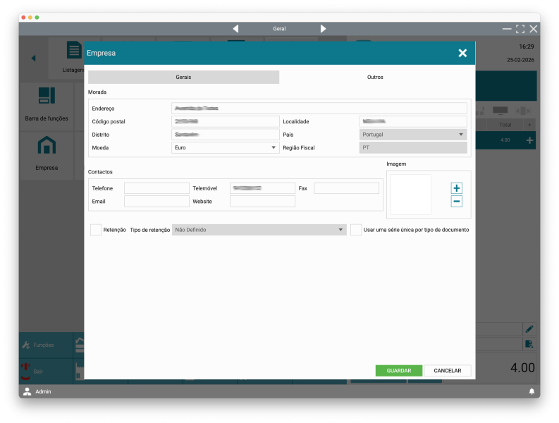 Imagem: Permite associar um logótipo à empresa, que poderá ser utilizado em documentos impressos, relatórios e layouts personalizados.