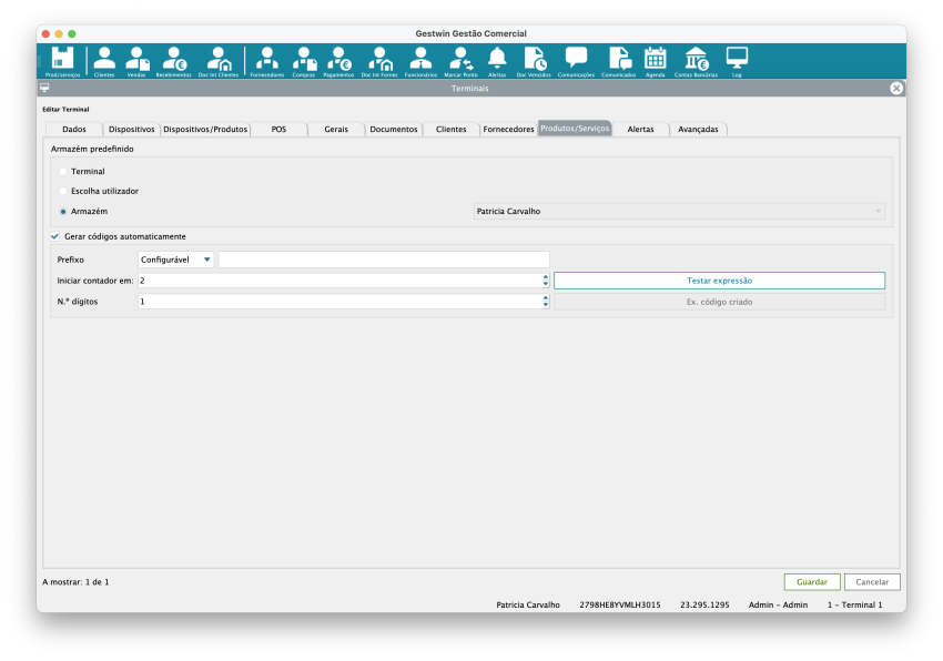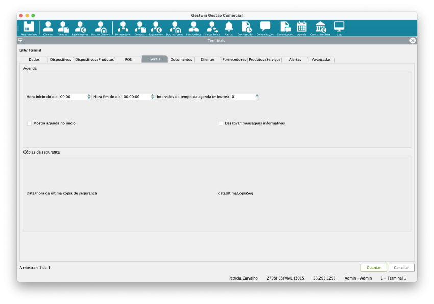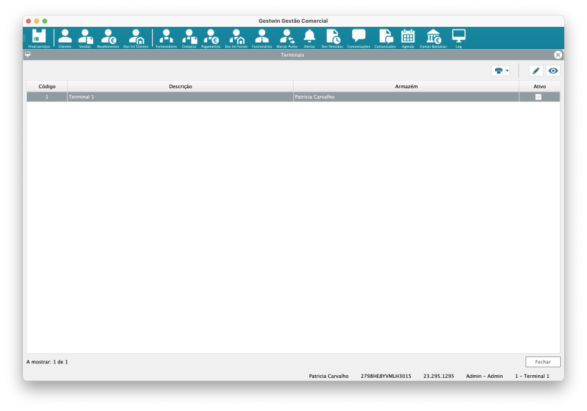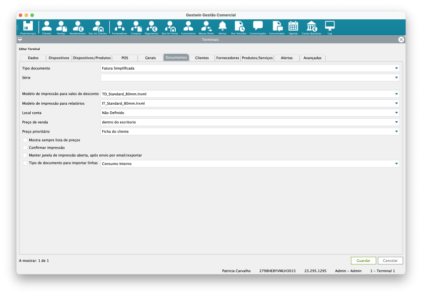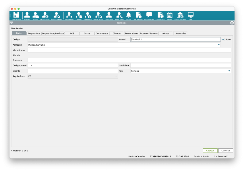 Armazém: Armazém associado ao terminal. Importante para controlo de stock. Dados informativos do local do terminal.