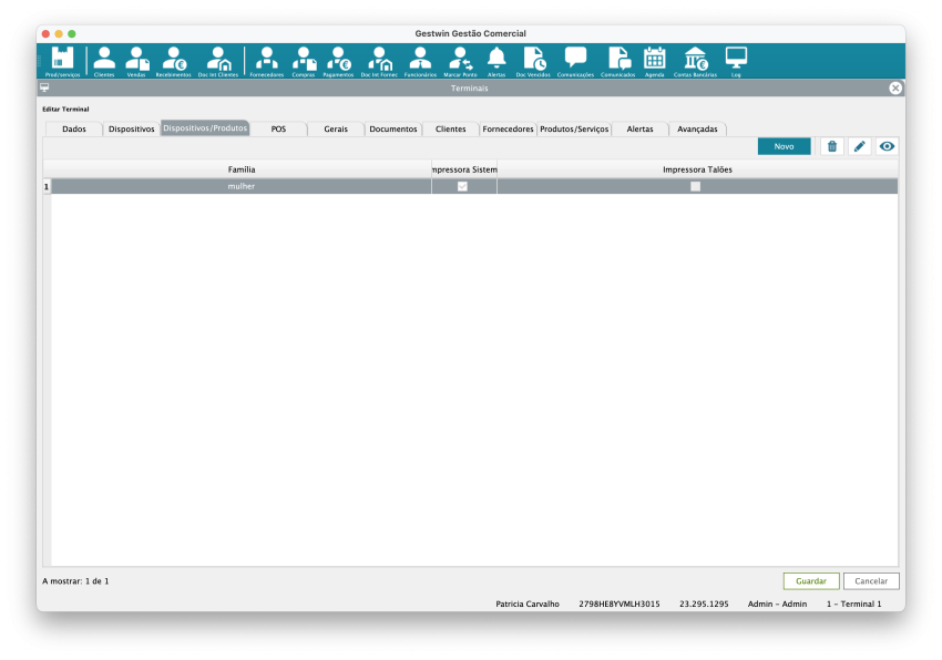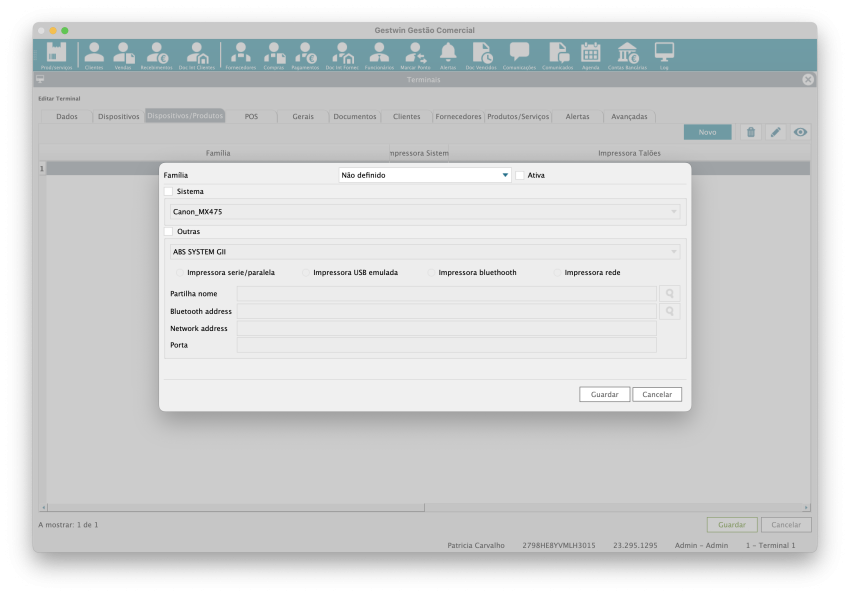 Nome: Nome ou designação do terminal, normalmente usado para facilitar a identificação (ex.: “Caixa 1”, “Balcão Principal”).