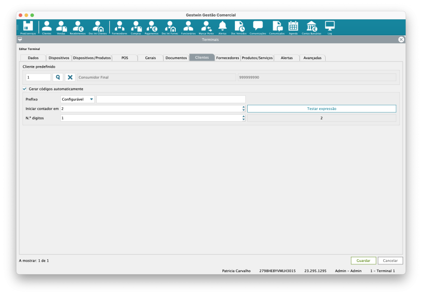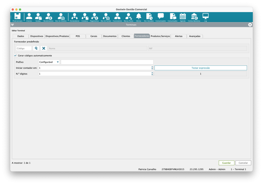 Código: Identificador interno do terminal no sistema. Permite distinguir cada posto de trabalho e associar operações, documentos e configurações a um terminal específico.