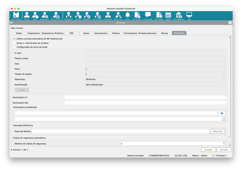 Enviar e-mail através de Gestwin: Permite que o Gestwin envie documentos por e-mail diretamente a partir do terminal. Ex.: faturas, recibos, documentos PDF.