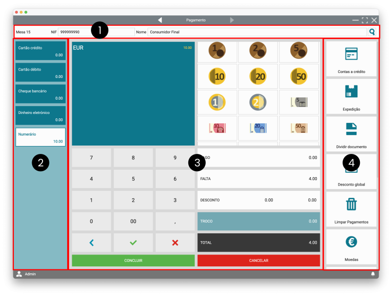 O Ecrã de Pagamento é o local onde finaliza a venda e regista a forma como o cliente efetua o pagamento.