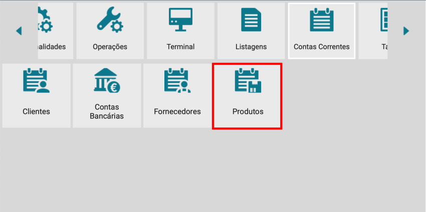 Clicar no ícone de pesquisa (lupa). Surge uma lista com todos os produtos registados.