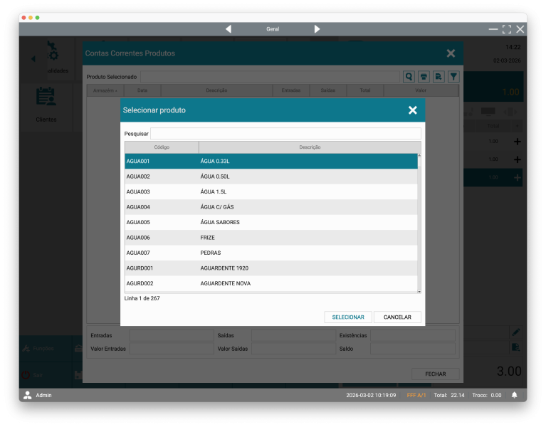 Consultar a conta corrente de um produto no Gestwin POS permite acompanhar todos os movimentos de stock associados, como entradas, saídas, transferências e saldo atual. Esta funcionalidade é essencial para controlar existências, analisar consumos e verificar rapidamente a evolução de um artigo específico.