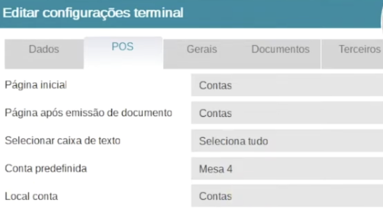 Na janela Editar Configurações Terminal navegue até ao separador POS: