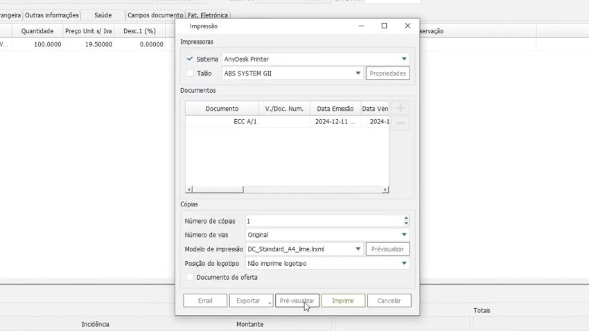 Ao clicar em Guardar, surge o ecrã de impressão onde é possível: