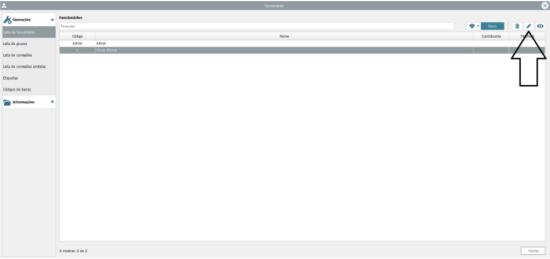 Da listagem de funcionários selecione o funcionário que deseja editar e clique em Editar (icon do lápis).