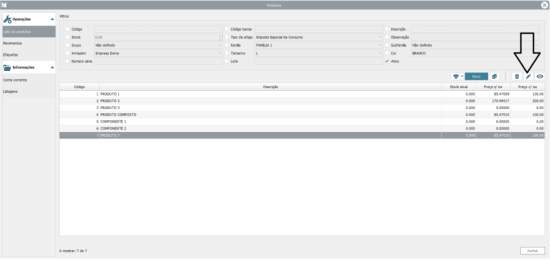 Da listagem de produtos / serviços selecione o produtos / serviço que deseja editar e clique em Editar (icon do lápis).