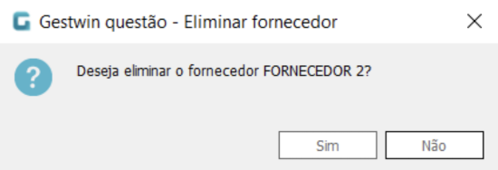 O Gestwin irá perguntar se deseja eliminar o fornecedor selecionado. Clique em Sim.