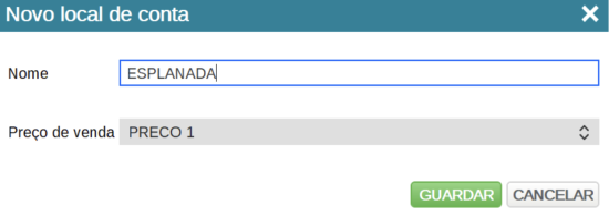 Na janela Novo local de conta dê um nome à sua nova conta e defina qual o preço de venda aplicado a este local.